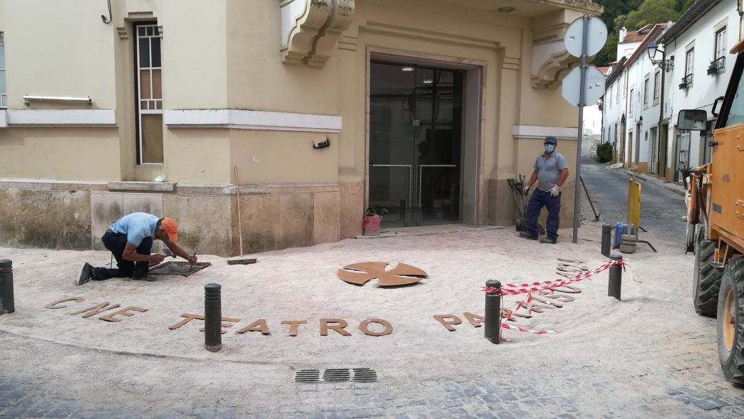 Aproveitando esta remodelação da calçada, será inserido um lettering em pedra de granito com a designação “CINE-TEATRO PARAÍSO” e a data de 1924, correspondente à data da sua inauguração após projeto do Arquiteto Deolindo Vieira. Será ainda inserida no pavimento, a cruz dos Templários na entrada do edifício, como símbolo identificativo do Município.