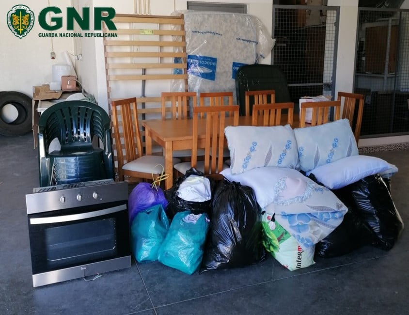 Um forno, uma mesa de sala, 8 cadeiras, uma mesa de jardim, uma cama e diversos utensílios de cozinha foram alguns dos materiais apreendidos na sequência do assalto.