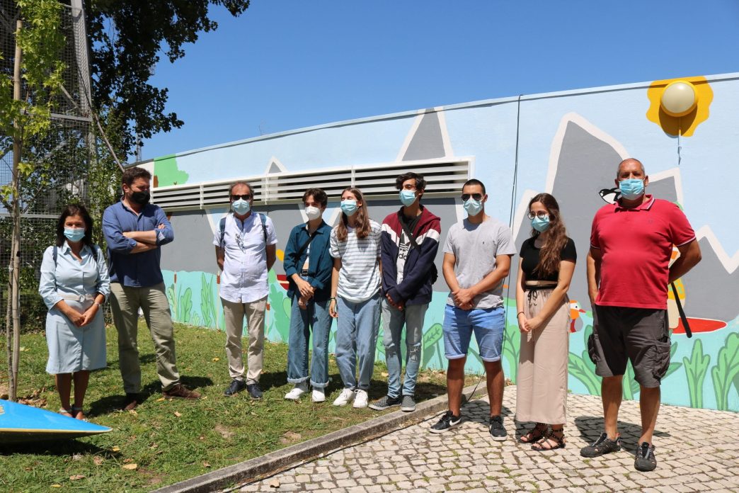 Foi apresentado ontem um novo mural, junto ao hangar do Centro de Formação Desportiva de Canoagem, pintado por alunos do 12.º ano de Artes da Escola Secundária de Santa Maria do Olival, Agrupamento de Escolas Nuno de Santa Maria.